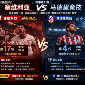 11 04月 2026 0 西甲:塞维利亚vs马竞,马竞分心大轮换,塞维利亚新帅主场首秀! 西甲:塞维利亚vs马竞开赛时间:04-1203:00西甲第31轮,塞维利亚坐镇皮斯胡安迎战马竞。表面看,这是一个保级队打... ayx #马竞 #欧冠 #塞维利亚 #轮换 #主场 #联赛 #比赛 #vs #胡安 #渣叔